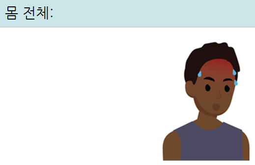 또한 몸전체로 보자면 피로감, 두통, 근육통, 오한, 발열, 매스꺼움등이 있을 수 있습니다. 이 경우 수분을 충분히 섭취하고, 열을 내리기 위하여 옷을 가볍게 입도록 해줍니다.